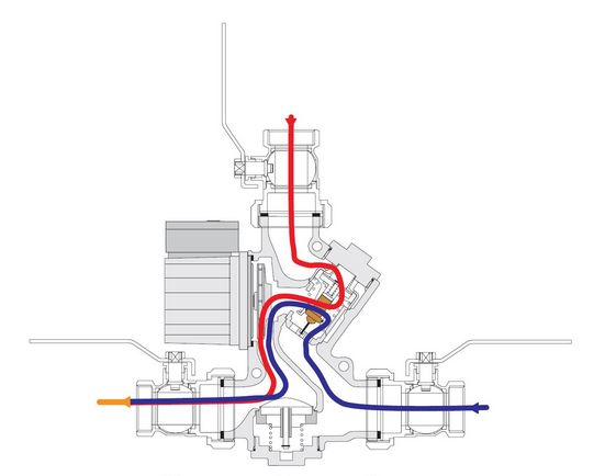 Nepogrešljiva termoregulacijska oprema za sistem centralnega ogrevanja. Maksimizira prednosti absorpcije tople vode v zalogovniku vode (toplotni vmesni zbiralnik ali toplotni zalogovnik) in ščiti povratni tok vode v kotlu.